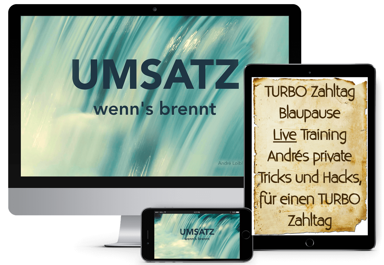 Mit "Umsatz wenn's brennt" gibt es kein "Aber ich muss vorher noch ..." bevor Du damit starten kannst, jetzt Umsatz zu machen.