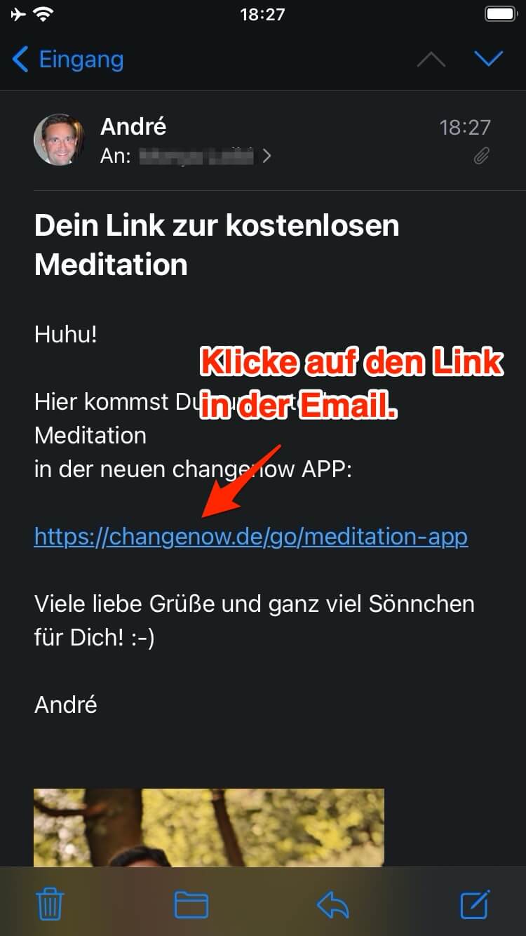 Anmerkung: Wenn Du die Email nicht auf dem Handy, sondern auf Deinem Rechner öffnest, erscheint ein QR-Code. Diesen einfach mit dem Handy scannen und öffnen. Dann geht es ganz normal hier weiter: