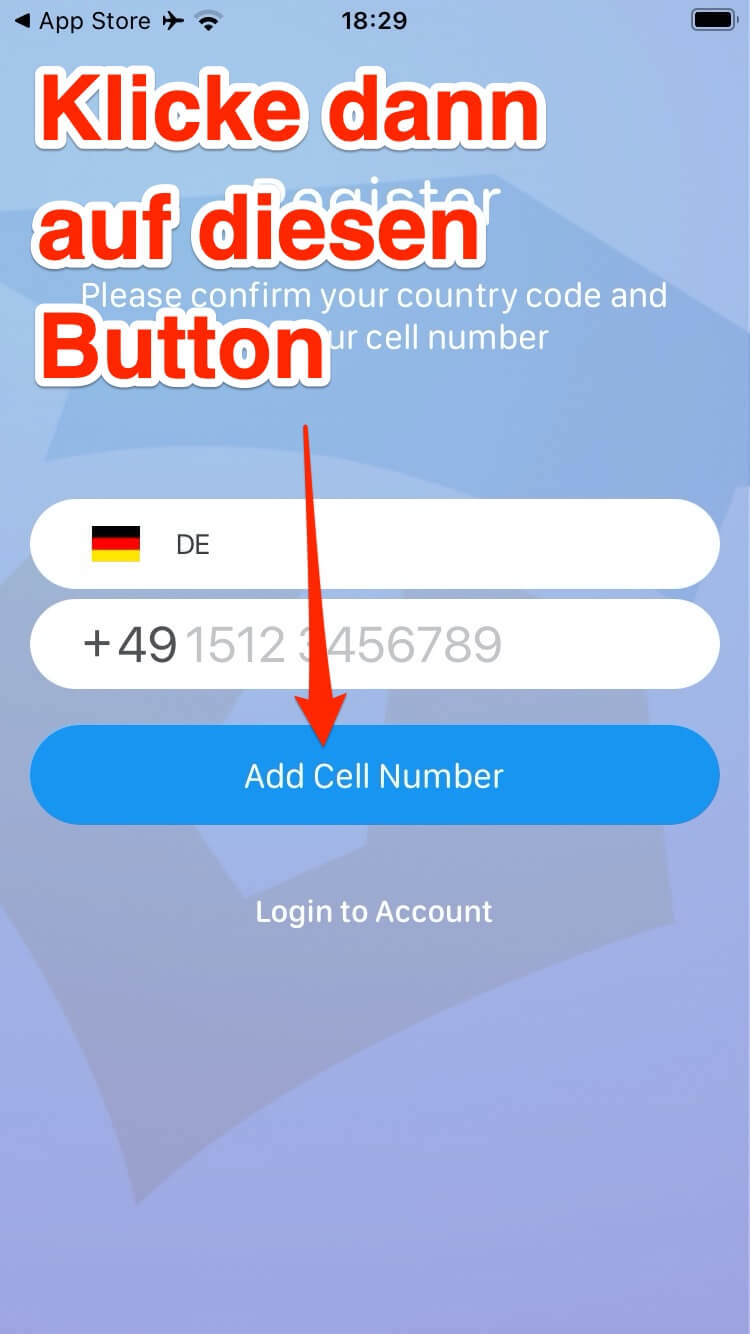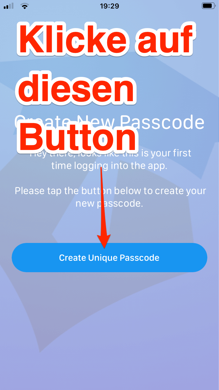 Super! Deine Handynummer ist verifiziert. Jetzt kannst Du Deinen eigenen 4 stelligen Code erstellen. Klicke als erstes auf den blauen Button: