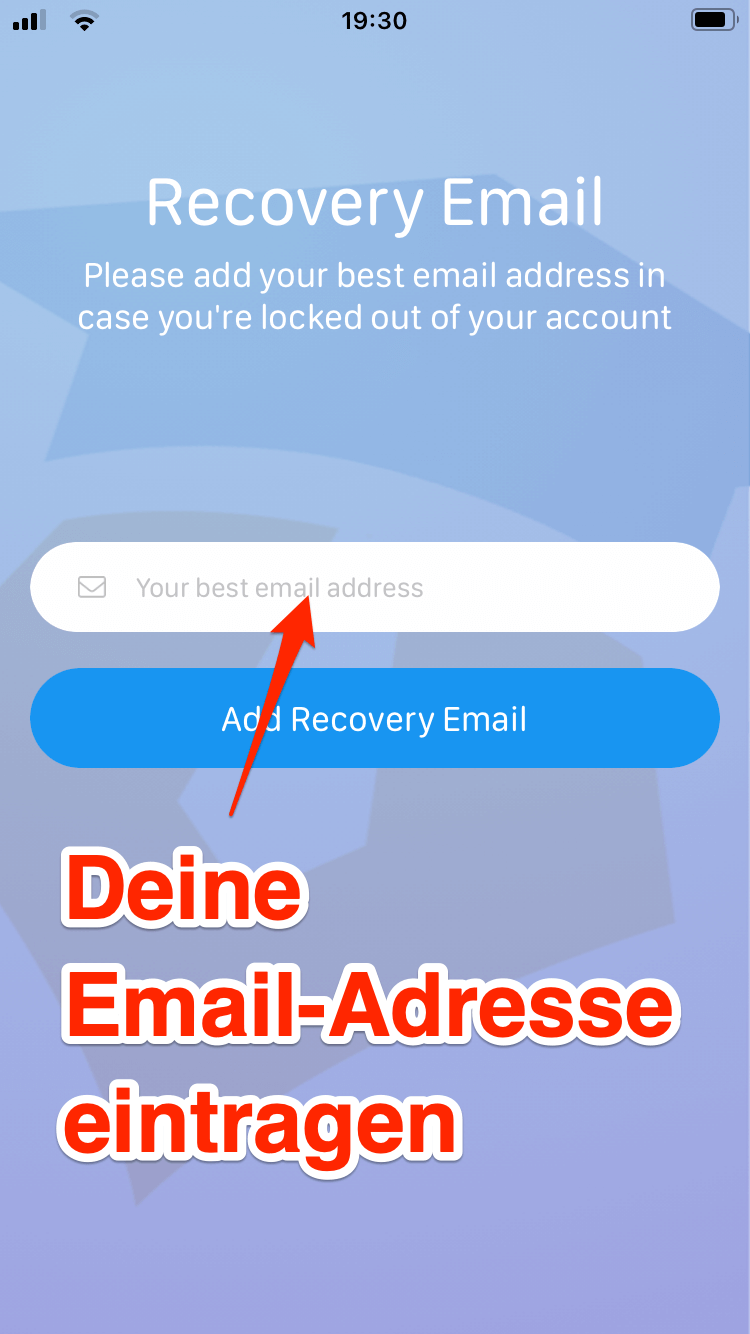 Perfekt! Trage jetzt noch die Email-Adresse ein. Am besten die, mit der Du auch bei changenow registriert bist. Falls Du doch mal Deinen Passcode vergisst und Dich versehentlich ausgesperrt hast: